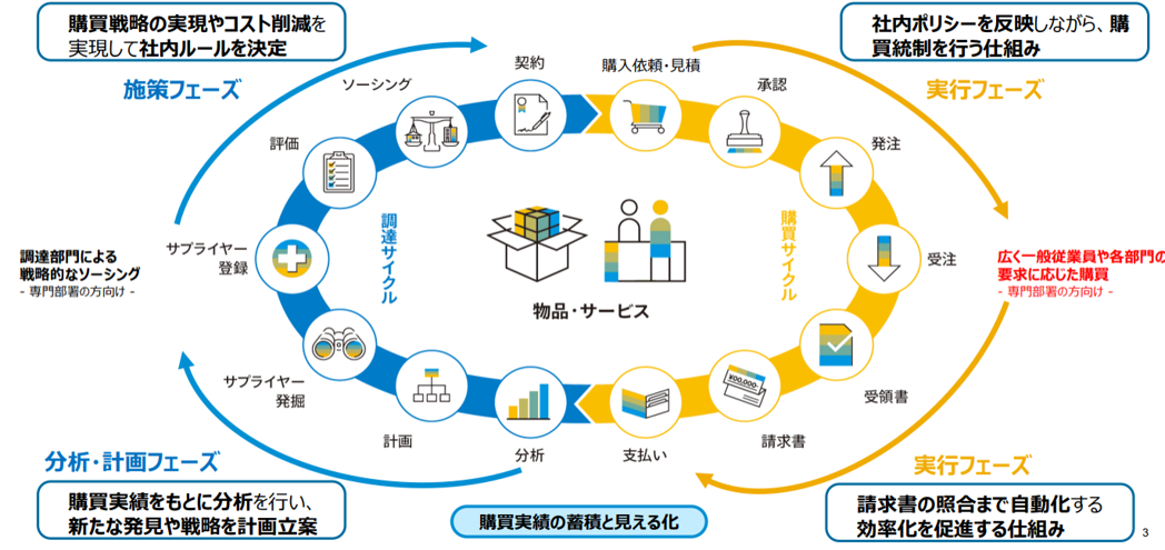 購買業務においては、契約管理をシステムA、請求処理をシステムB・・・とシステムが乱立しがちですが、